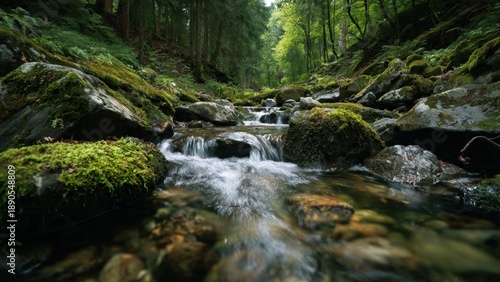 Obraz premium Stream flowing through a lush forest