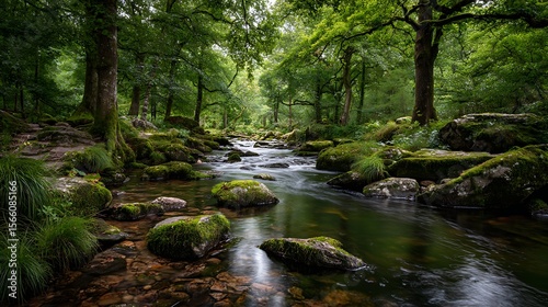 © goodskin, Obraz premium Stream flows through forest