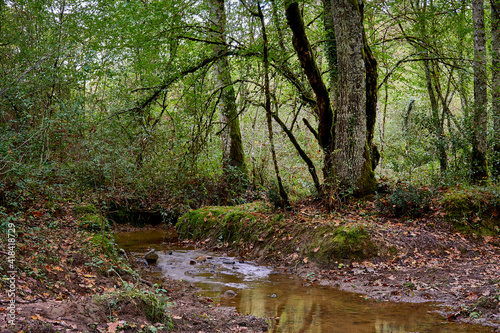 © Andriy, Fototapeta premium stream in the autumn forest
