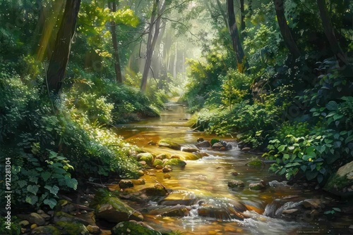 © ellon, Obraz premium stream in the forest