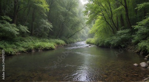 © niji, Obraz premium stream in the forest