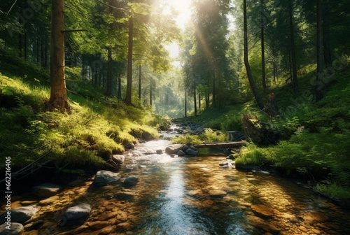 Fototapeta premium stream in the forest. generative ai