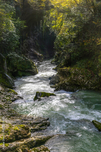 © sablinstanislav, Obraz premium stream in the forest, vertical view