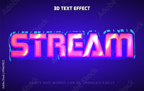 Obraz premium Stream neon pink 3d editable text effect style