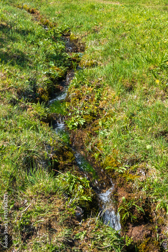 Fototapeta premium Stream on a grass meadow with running water