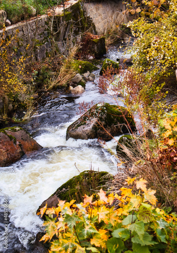 © Kari, Obraz premium Stream running through the town of Triberg, Germany in the Black Forest on a fall day.