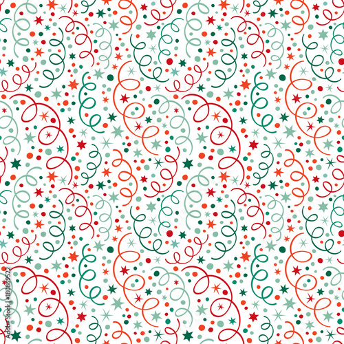 © Julia, Obraz premium Streamers, stars and confetti. Seamless vector pattern.