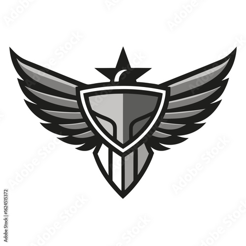 © Nobel Fahad, Fototapeta premium Streamlined Metallic Eagle Crest with Detailed Wing Design
