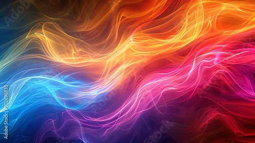 Fototapeta premium Streams of light trails in rainbow colors, organic shapes, vibrant and dynamic