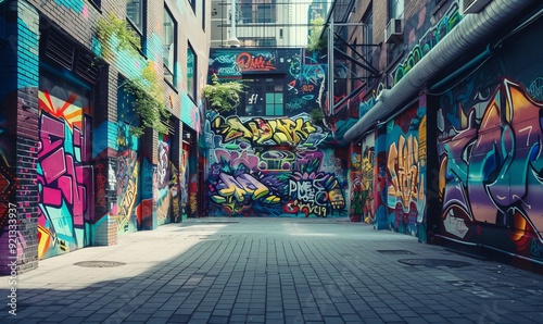Fototapeta premium Street art with vibrant graffiti and large-scale murals