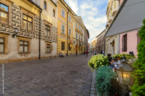 Fototapeta premium Street caffe in old Krakow in the evening.