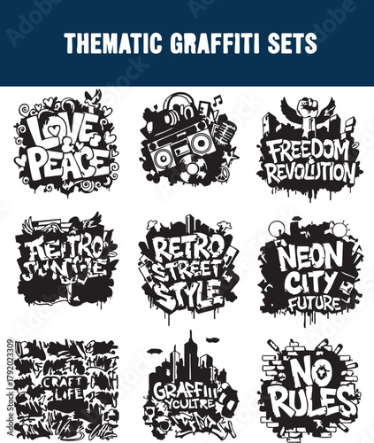 Fototapeta premium Street Culture Graffiti Words Urban Slang and Hip-Hop Typography Pack