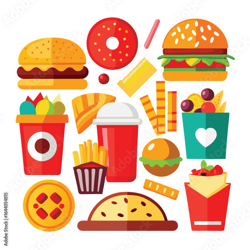 © MdRakibur, Fototapeta premium Street fast food dish set vector illustration