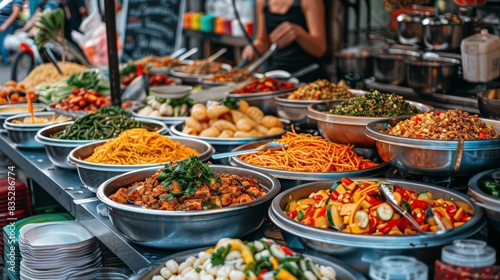 Fototapeta premium Street Food Market: Capture the vibrant energy of a bustling street food...