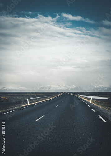 © Mathias, Fototapeta premium Street Highway Ring road No.1 in Iceland, with view towards mountain. Southern side if the country.