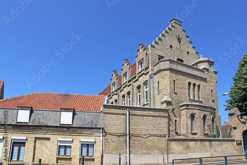 © Jenny Thompson, Obraz premium Street in Bergues, France