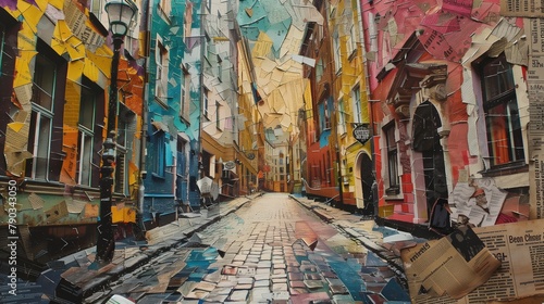 © Vahram, Fototapeta premium Street in colorful newspaper scraps style