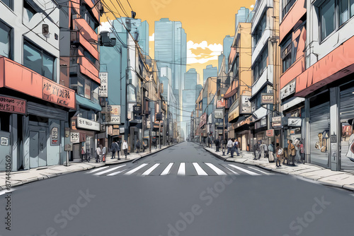 Obraz premium street in the city anime style background