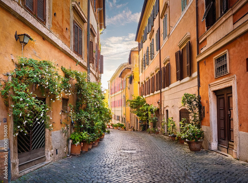 © Indd, Fototapeta premium street in Trastevere, Rome, Europe. Trastevere is a romantic district of Rome