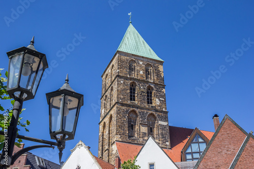 Fototapeta premium Street light and church tower in Rheine