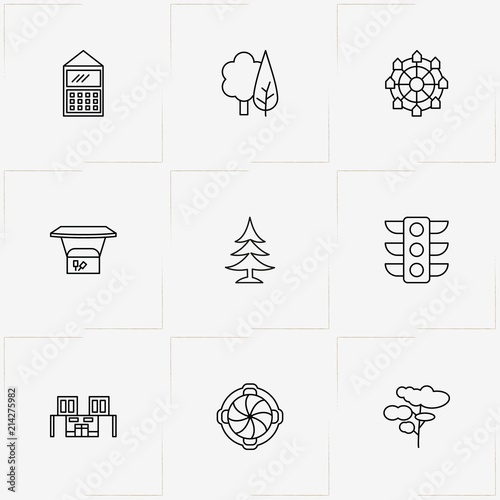 Naklejka premium Street line icon set with stall, ferris wheel and tree
