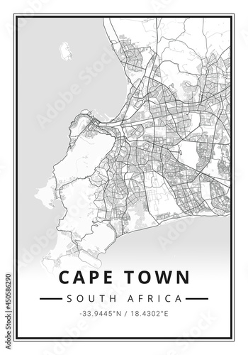© Samuel B., Fototapeta premium Street map art of Cape Town city in South Africa - Africa