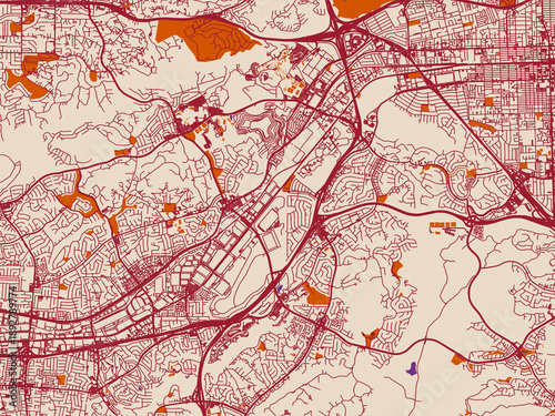 © W&S Stock, Obraz premium Street network map of Diamond Bar, California