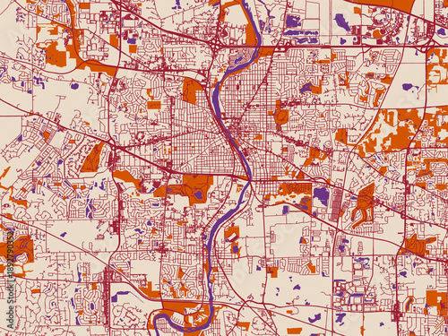 Obraz premium Street network map of Elgin, Illinois, burgundy linework on cream