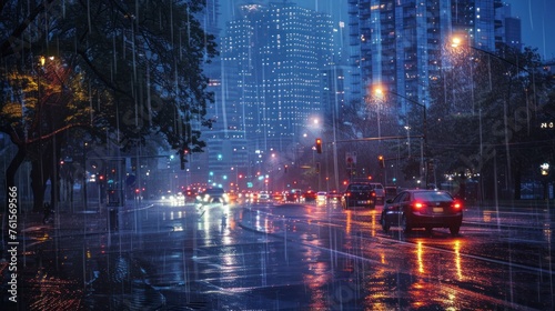 © Marco, Fototapeta premium street of a city at night with rain
