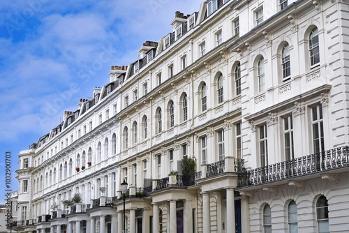 © Spiroview Inc., Fototapeta premium Street of elegant white townhouses in London