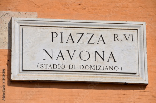 © lucazzitto, Fototapeta premium Street Plate: the famous Piazza Navona in Rome, Italy