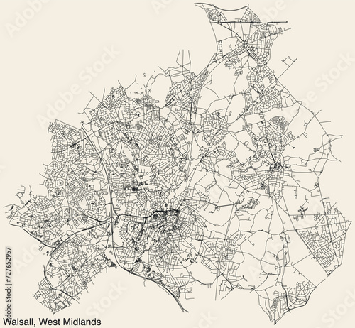 © Sanja, Fototapeta premium Street roads map of the METROPOLITAN BOROUGH OF WALSALL, WEST MIDLANDS