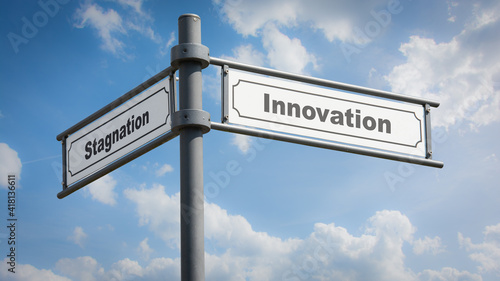 © Thomas Reimer, Fototapeta premium Street Sign Innovation versus Stagnation
