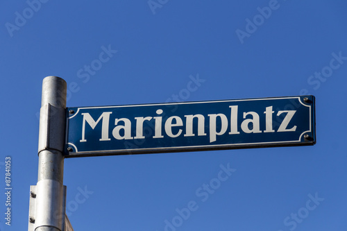 Fototapeta premium Street sign of Marienplatz in Munich, Germany, 2015