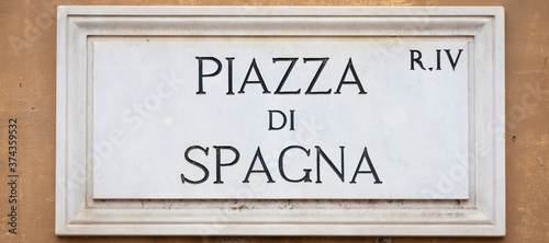 © Paolo Gallo, Obraz premium Street sign: Piazza di Spagna (Spain Square) in Rome
