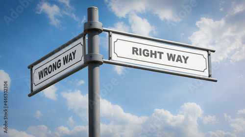 © Thomas Reimer, Fototapeta premium Street Sign to RIGHT WAY versus WRONG WAY