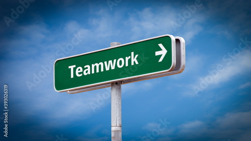 © Thomas Reimer, Obraz premium Street Sign to Teamwork