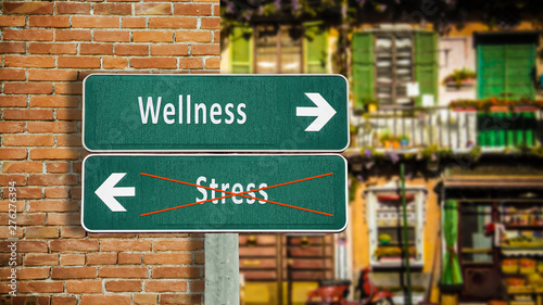 Obraz premium Street Sign to Wellness versus Stress