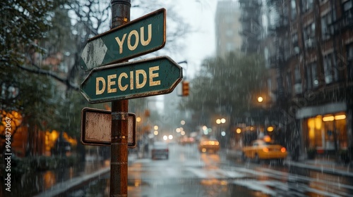 © BG_Illustrations, Obraz premium Street Signpost Symbolizing Decision Making