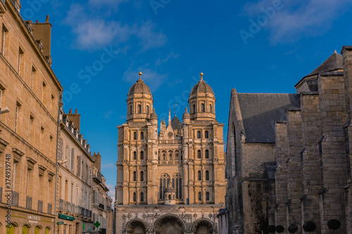 © Zimu, Fototapeta premium Street view of Église Saint Michel de Dijon, at sunset.