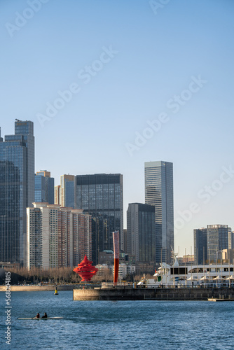 Fototapeta premium Street view of modern buildings in Qingdao Coastal Bay Area