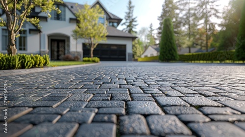 © Khoirul, Fototapeta premium Street view of rustic style stone paving residences, in a modern residential suburban.