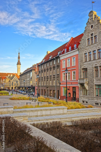 Obraz premium Street view to the Town Hall in the Old city of Tallinn in Estonia