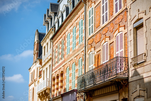 Fototapeta premium Street view with colorful buildings in Trouville, famous french town in Normandy