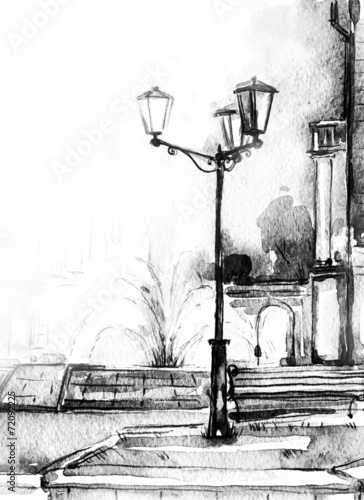 © Anna Ismagilova, Fototapeta premium street. watercolor illustration