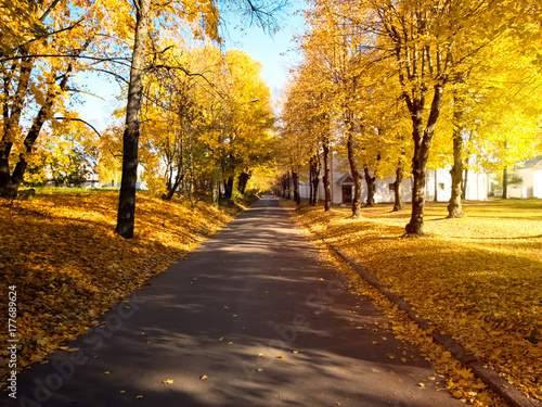 Fototapeta premium Street with alley trees on a sunny autumn day