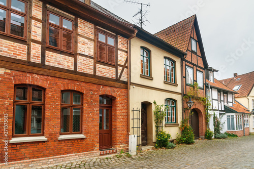 © Elena Odareeva, Fototapeta premium Street with Medieval old brick buildings. Luneburg. Germany