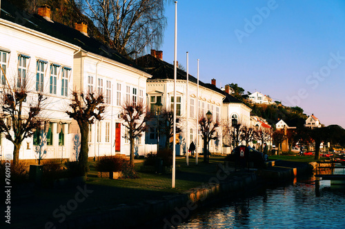 © mariuszks, Naklejka premium Street with old port buildings along the wharf