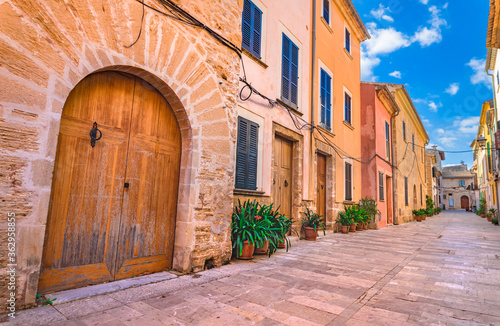 © vulcanus, Fototapeta premium Street with potted plants in Alcudia old town, Majorca, Spain
