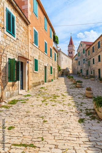 Fototapeta premium Street with typical stone houses in Postira old town, Brac island, Croatia
